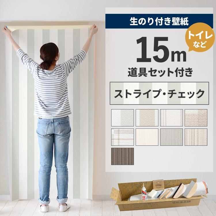 初心者セット 壁紙 のり付き 15m 施工道具付き 張り替え 7点セット クロスセット 補修 ストライプ 縞 12品番 壁紙屋本舗 Paypayモール店 通販 Paypayモール